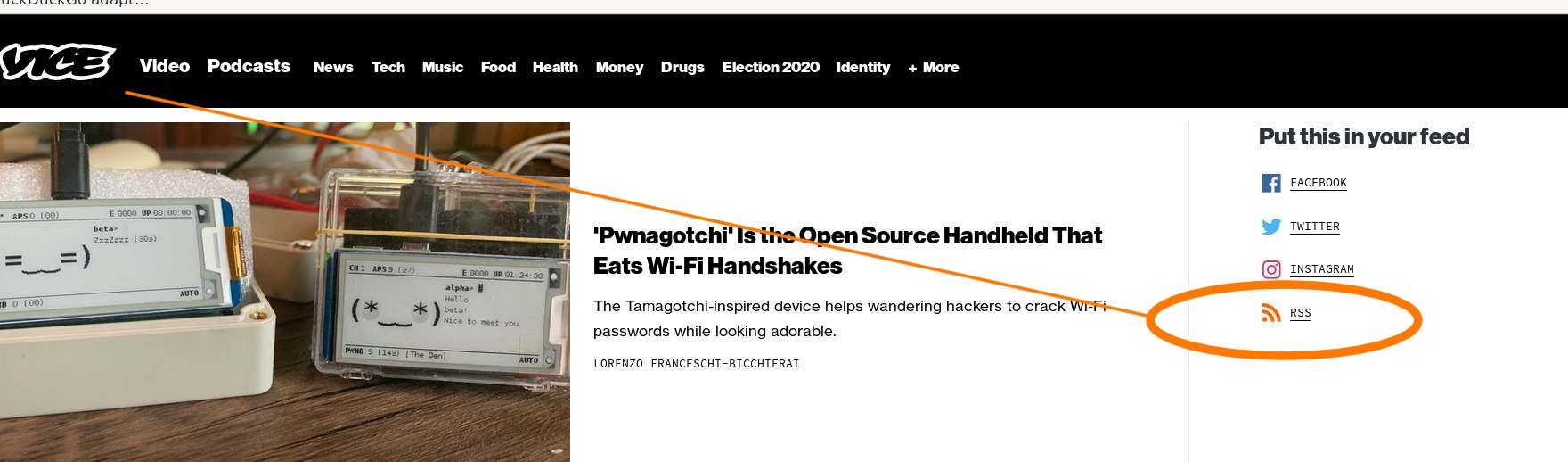 Achte auf das Symbol und das Kürzel „RSS“ auf allen Webseiten von